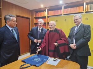 “En este documento, el Sumo Pontífice agregó tres puntos al pacto educativo global de Francisco; el primero, ayudar a los jóvenes a vivir la vida espiritual e interior, o sea a descubrir el sentido; el segundo, trabajar con la educación digital, no desarrollar tecnofobias, pero sin ingenuidades capacitar a los estudiantes con sentido ético; y el tercer punto es la educación para la paz, recordando que el Papa Francisco establece que la unidad es el Don profético más fuerte”, sostuvo el Cardenal ante la atenta mirada de las autoridades rectorales.